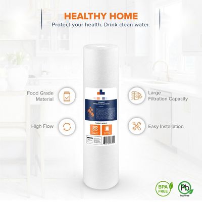 Aumente la calidad de su agua con nuestro cartucho de filtración de sedimentos PureGuard Plus.La avanzada tecnología de filtración de 1 micrón de este cartucho asegura la eliminación incluso de las partículas más pequeñas, dejándote con agua cristalina libre de suciedad, arena y óxido.